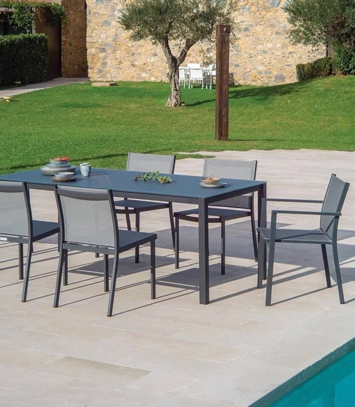 El sillón apilable para jardín Panama está fabricado en aluminio con revestimiento en polvo (poliéster). Tiene una asiento tejido con textilene. Las 4 patas tienen tapones antideslizantes.