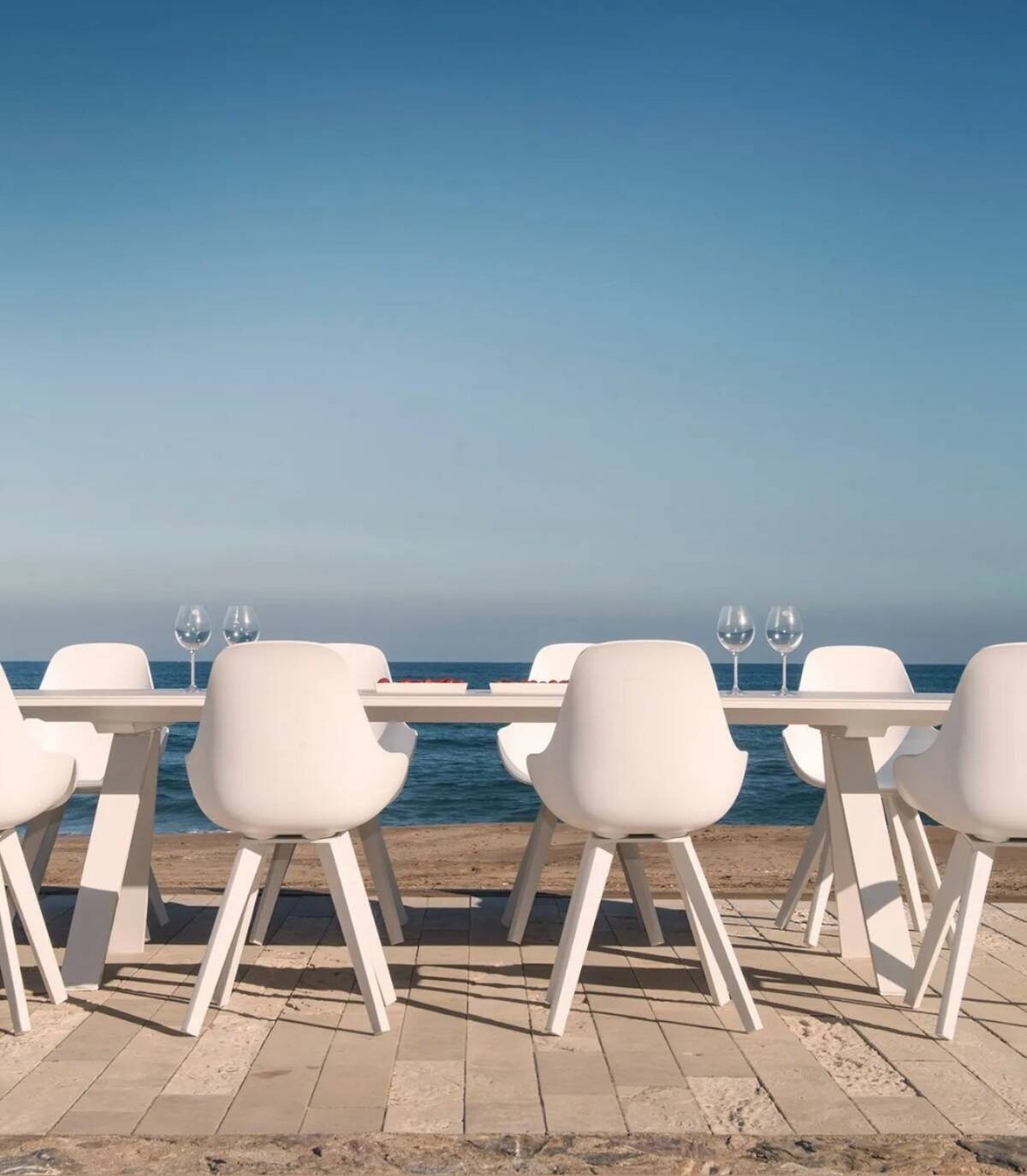 La silla para comedor Neverland está fabricado en aluminio con revestimiento en polvo (poliéster). Tiene una asiento tejido con textilene. Las 4 patas tienen tapones antideslizantes.
