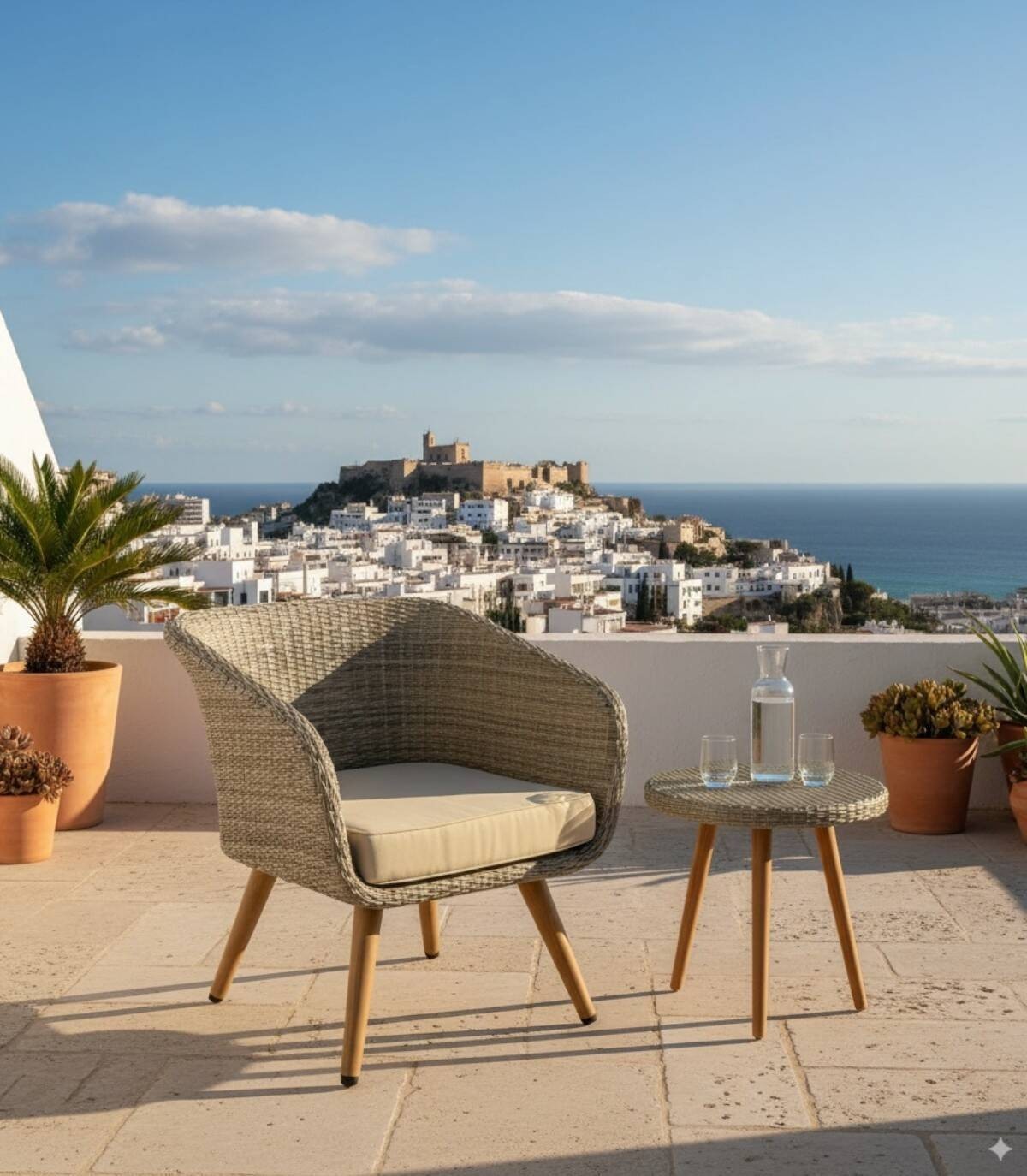 Read moreShow lessHet heeft een structuur gemaakt van aluminium behandeld met anti-UV en in de massa geverfd met een rugleuning in synthetische rotanstijl in recyclebare hars met een glasvezeleffect en textielkussens. Alle poten zijn voorzien van antislip doppen, inclusief beige kussen.
