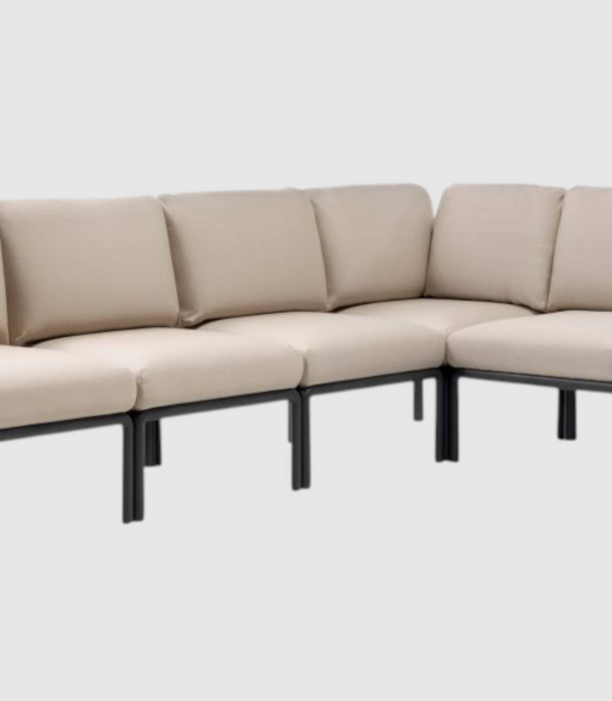 De komodo 5 bank is een modulair zitsysteem met een structuur gemaakt van in de massa geverfd, anti-UV behandeld polypropyleen, recyclebaar mat-effect glasvezelhars en textileen kussens. De afneembare rugleuning en armleuningen kunnen aan alle kanten van de zitting worden bevestigd. Alle poten zijn voorzien van antislipdoppen.