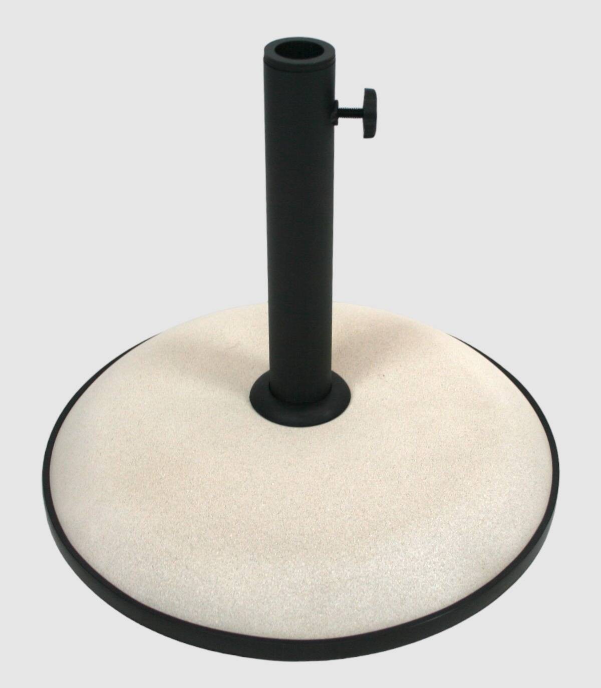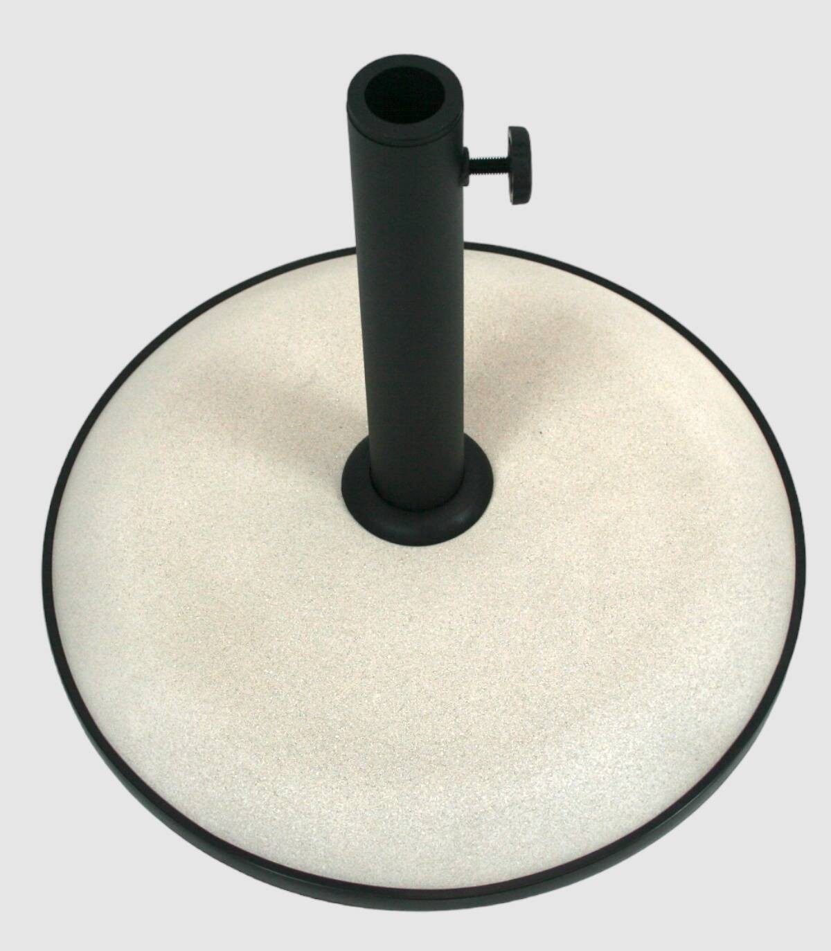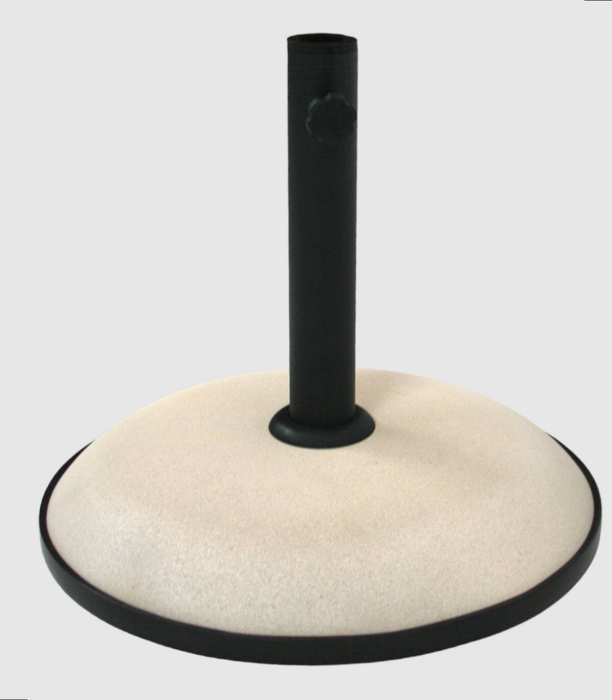 Base de cemento que sirve para mantener en pie un parasol con acoples para diferentes tamaños de palos.