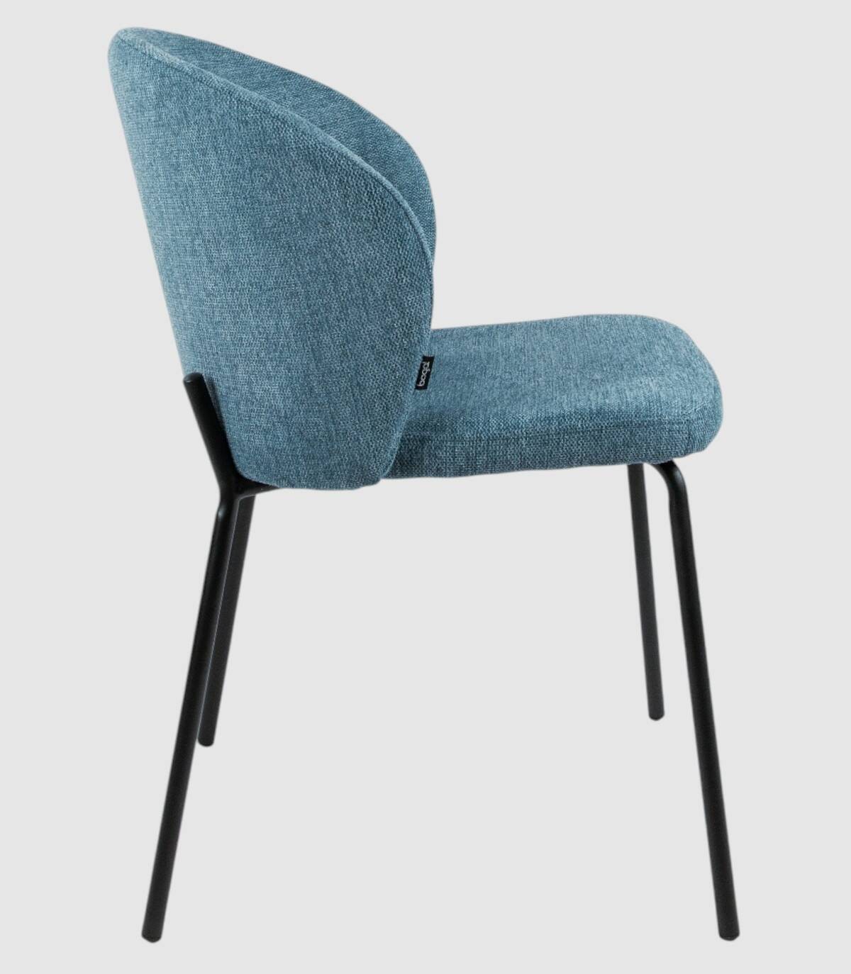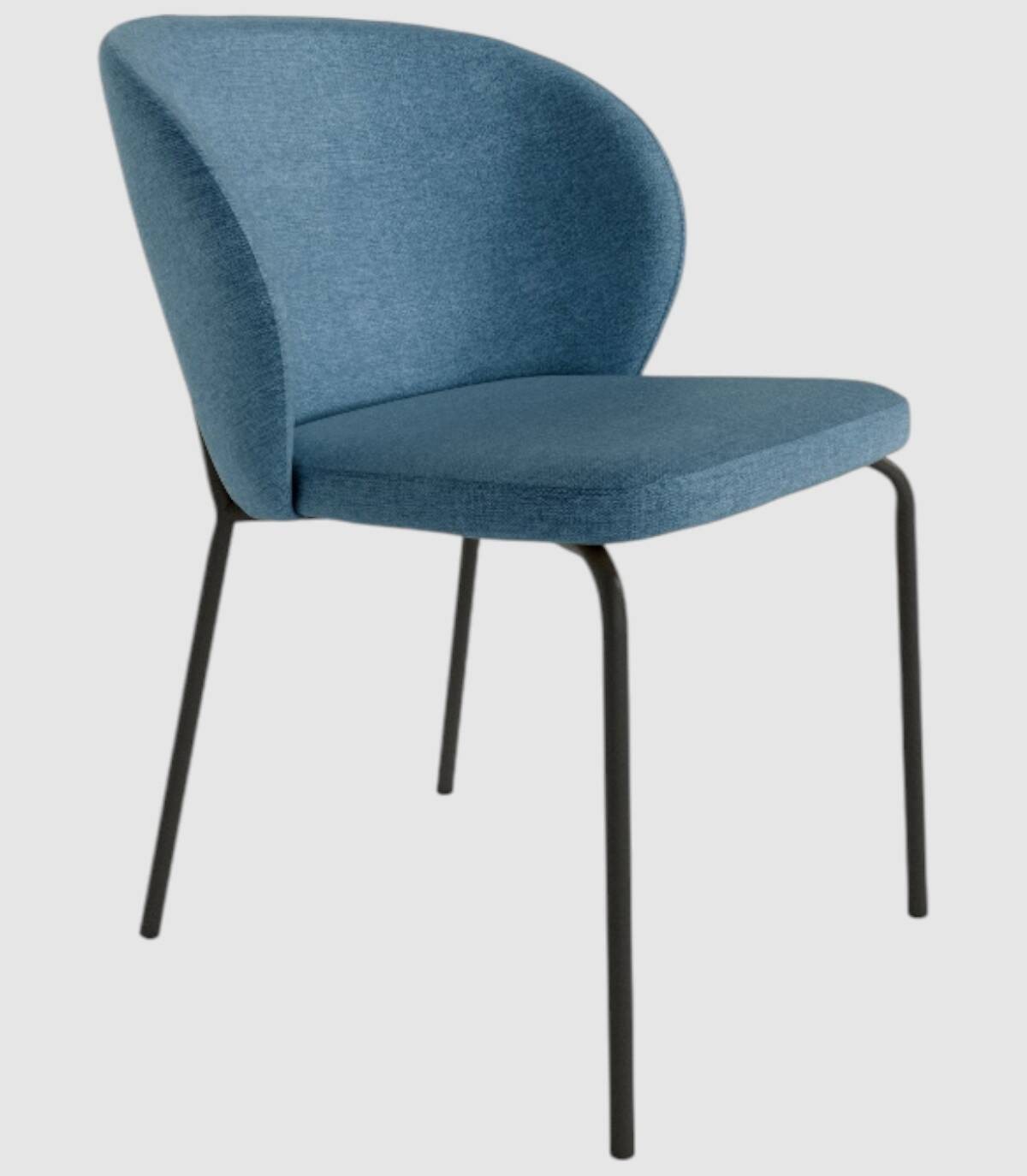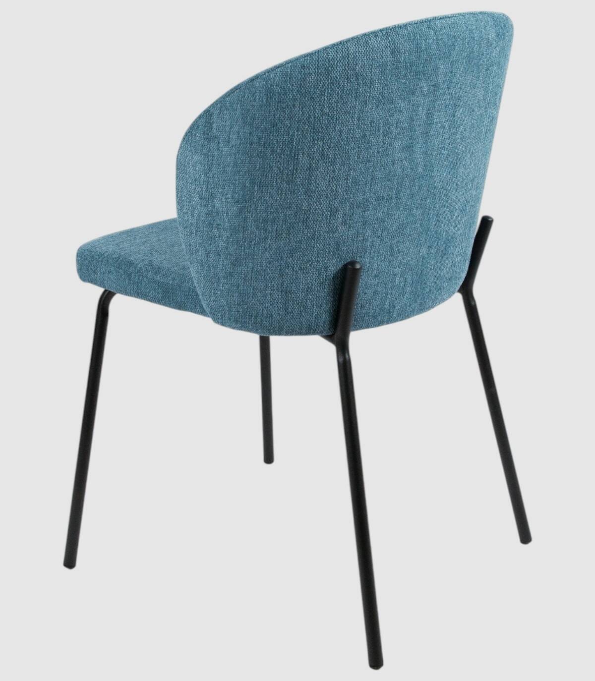 La silla Bergen de comedor se compone de respaldo y asiento tapizado y patas metálicas pintadas de color negro.