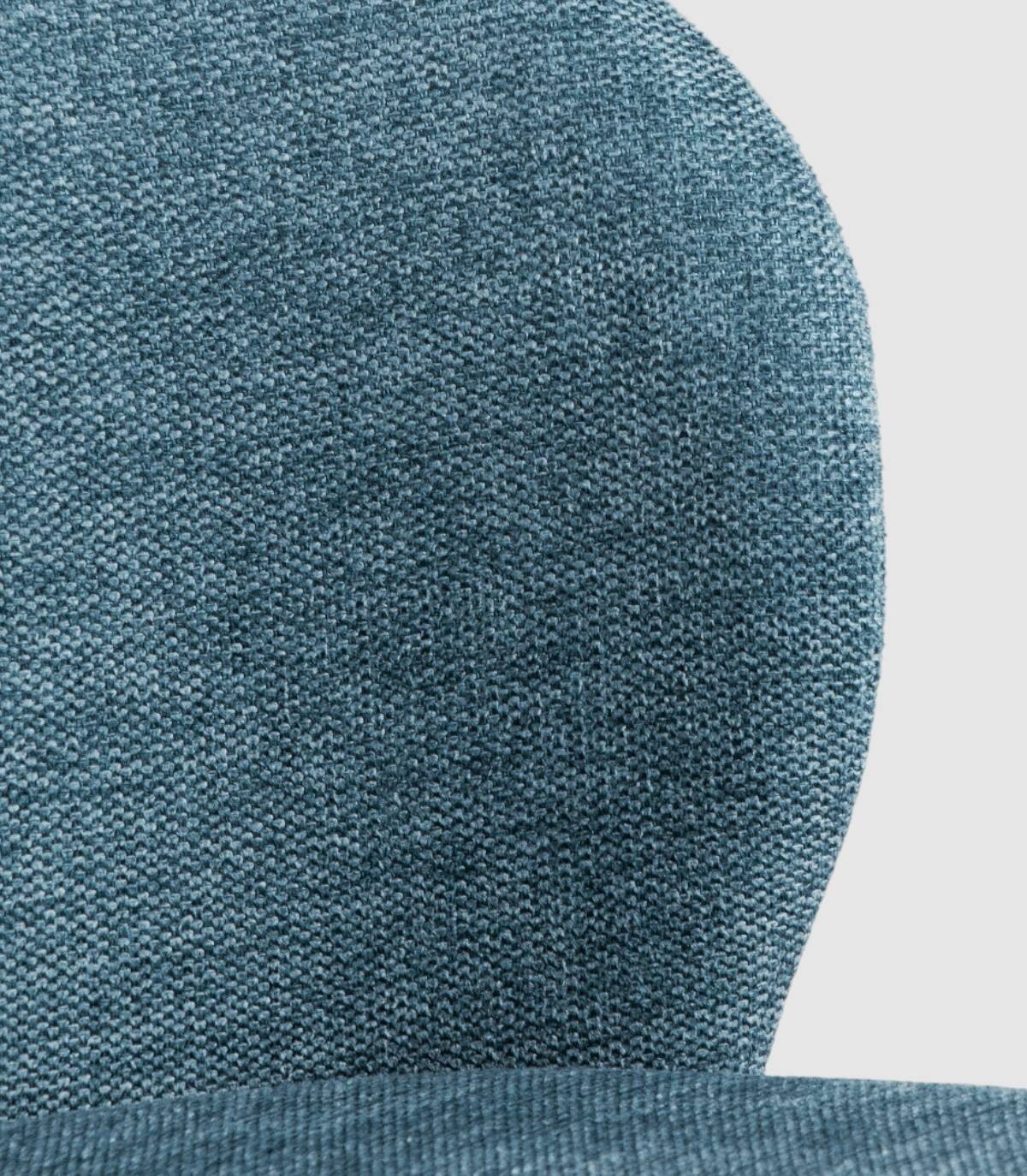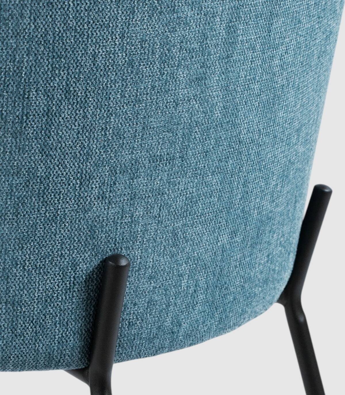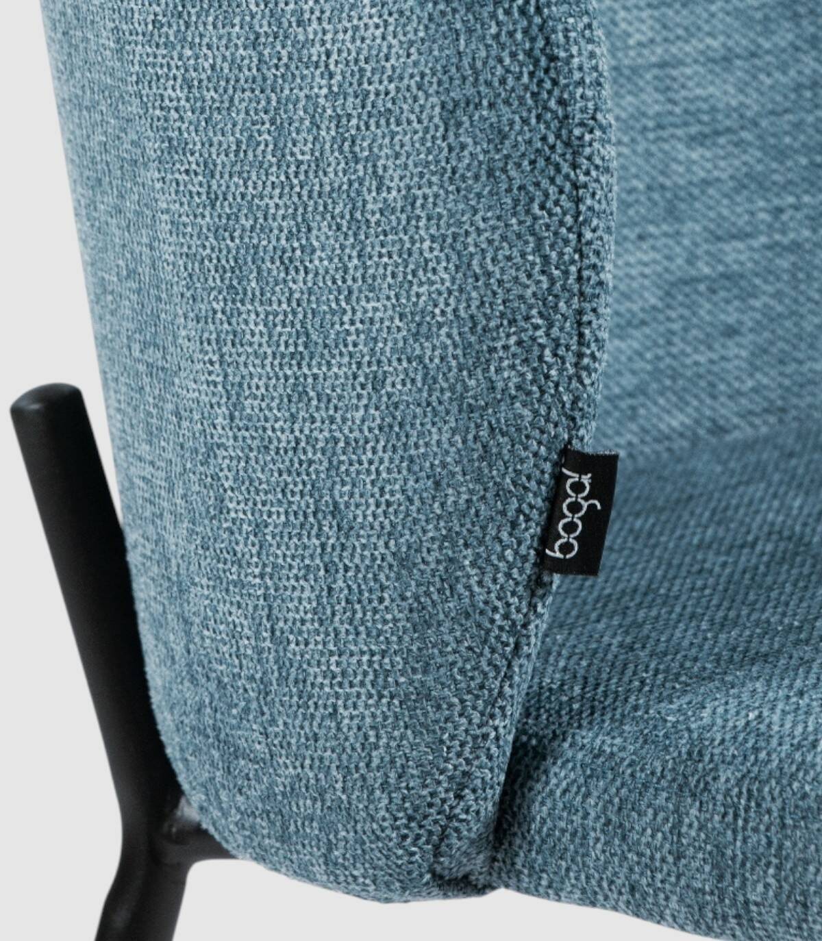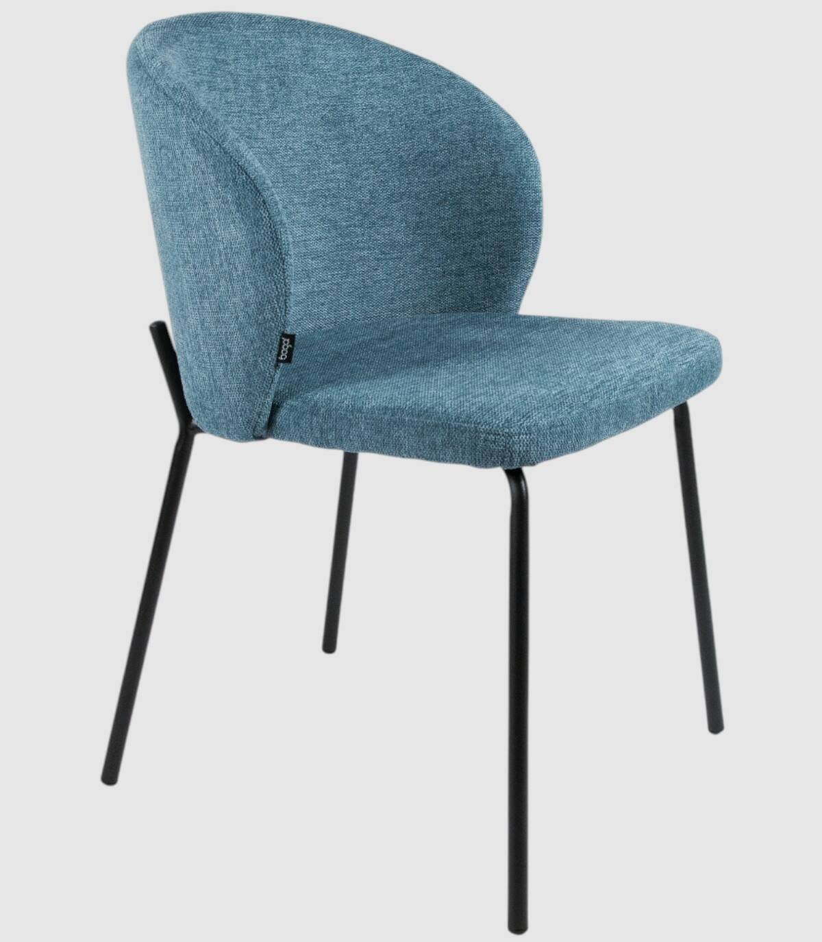 La silla Bergen de comedor se compone de respaldo y asiento tapizado y patas metálicas pintadas de color negro.