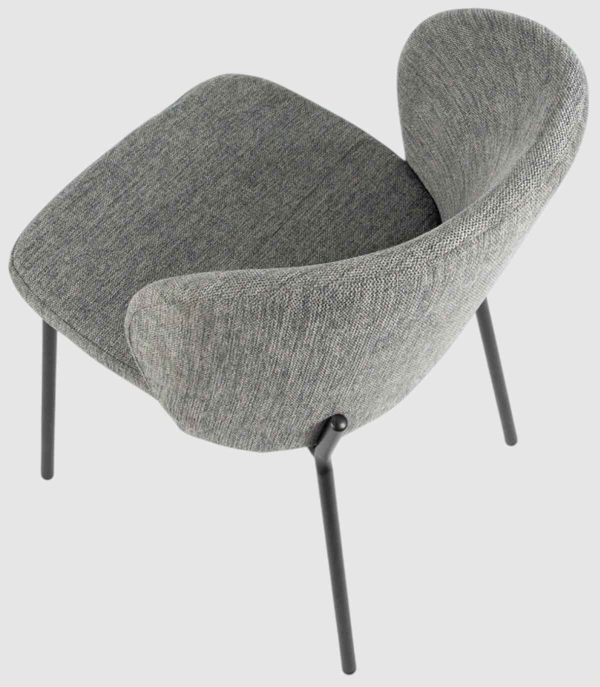 La silla Bergen de comedor se compone de respaldo y asiento tapizado y patas metálicas pintadas de color negro.