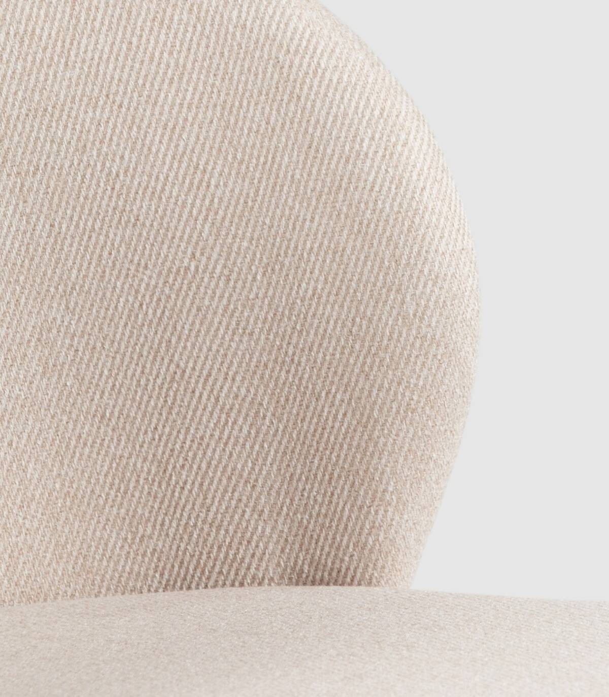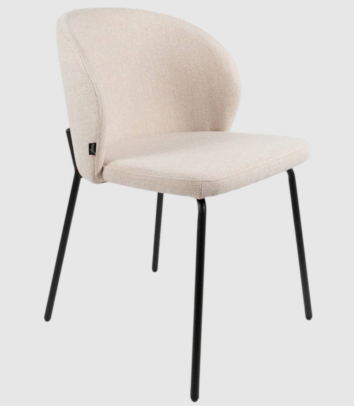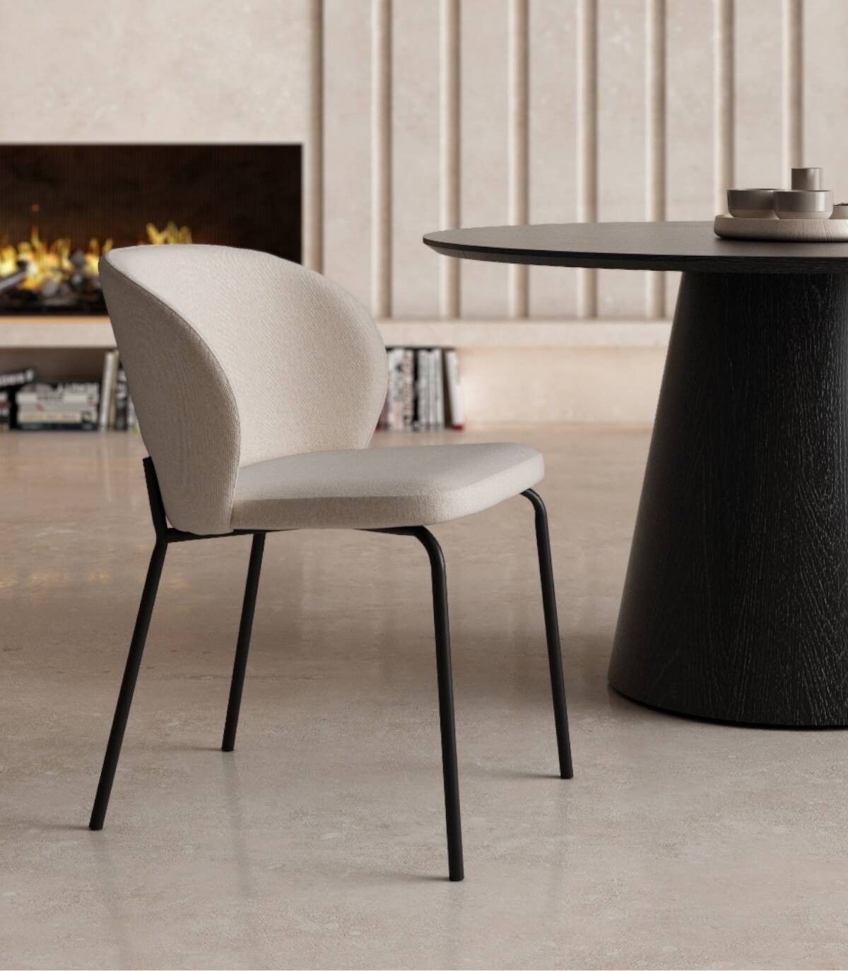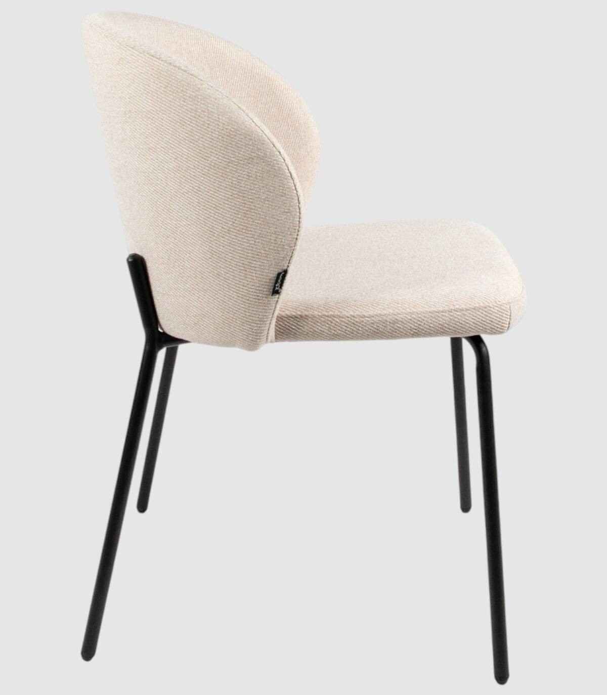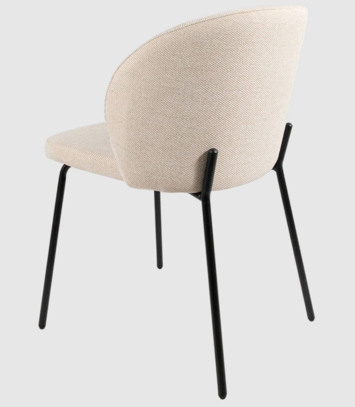 La silla Bergen de comedor se compone de respaldo y asiento tapizado y patas metálicas pintadas de color negro.
