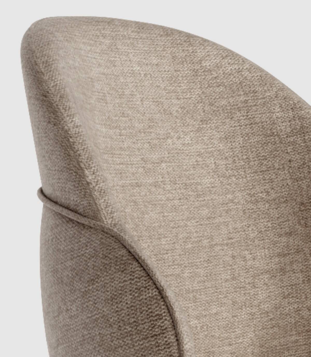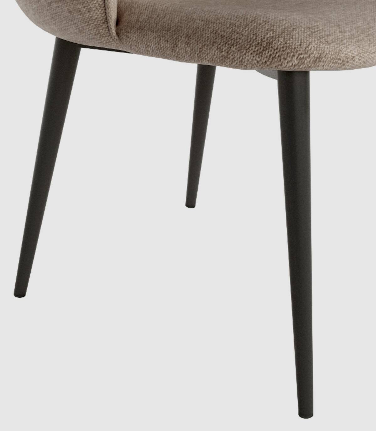La silla Venecia con asiento y respaldo tapizado, de diseño elegante y moderno, tiene una estructura metálica acabada en color negro.