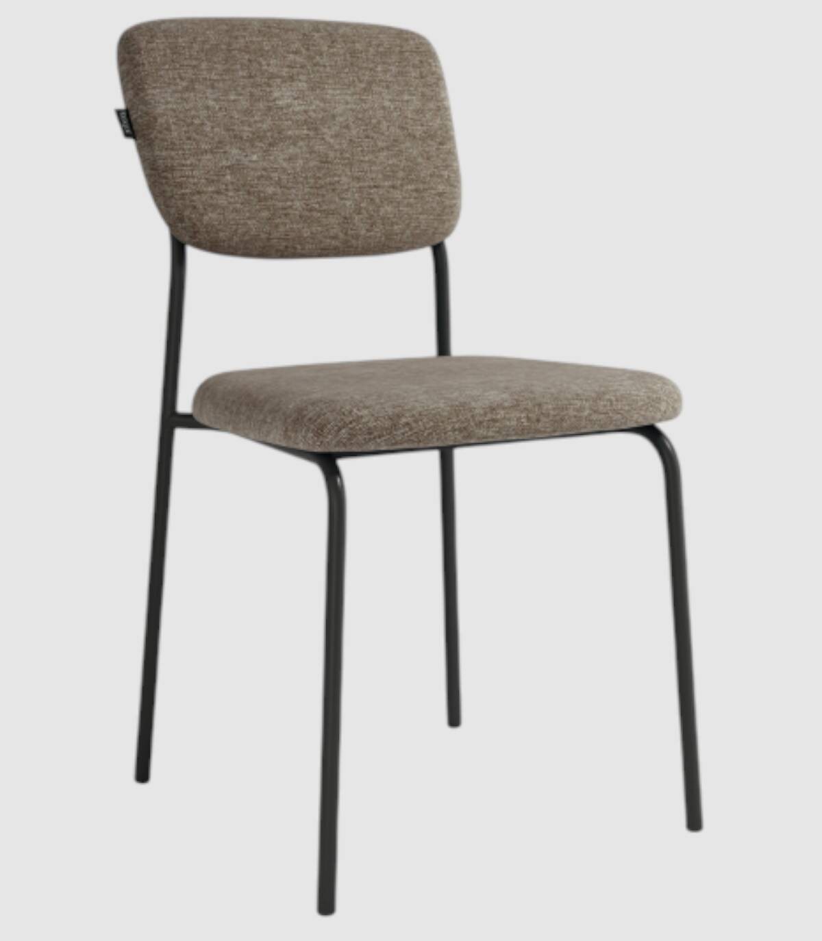 La silla Kobe sin reposabrazos se compone de estructura y patas de color negro con tapizado de color marrón en el asiento y el respaldo.