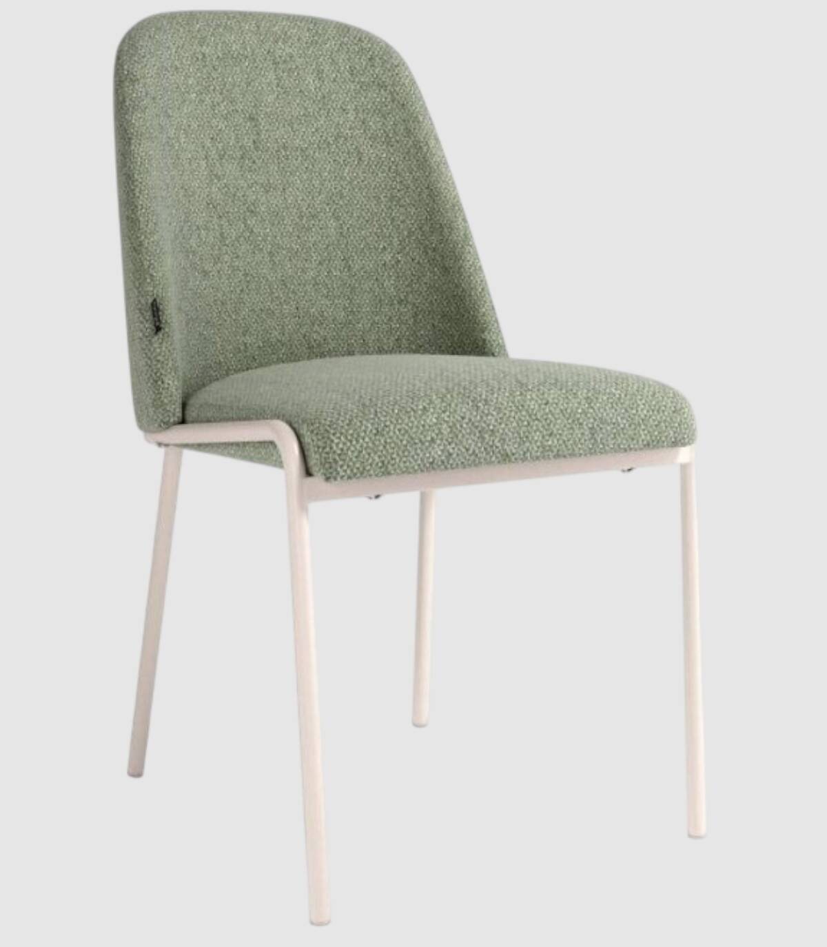 La silla Calgary sin reposabrazos se compone de estructura y patas de color marfil con tapizado de color verde en el asiento y el respaldo.