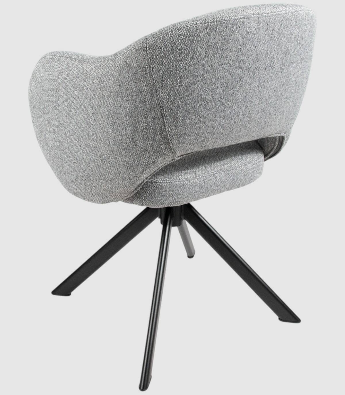 La silla Cork se compone de asiento, respaldo tapizado y patas metálicas negras con sistema giratorio 360 grados.