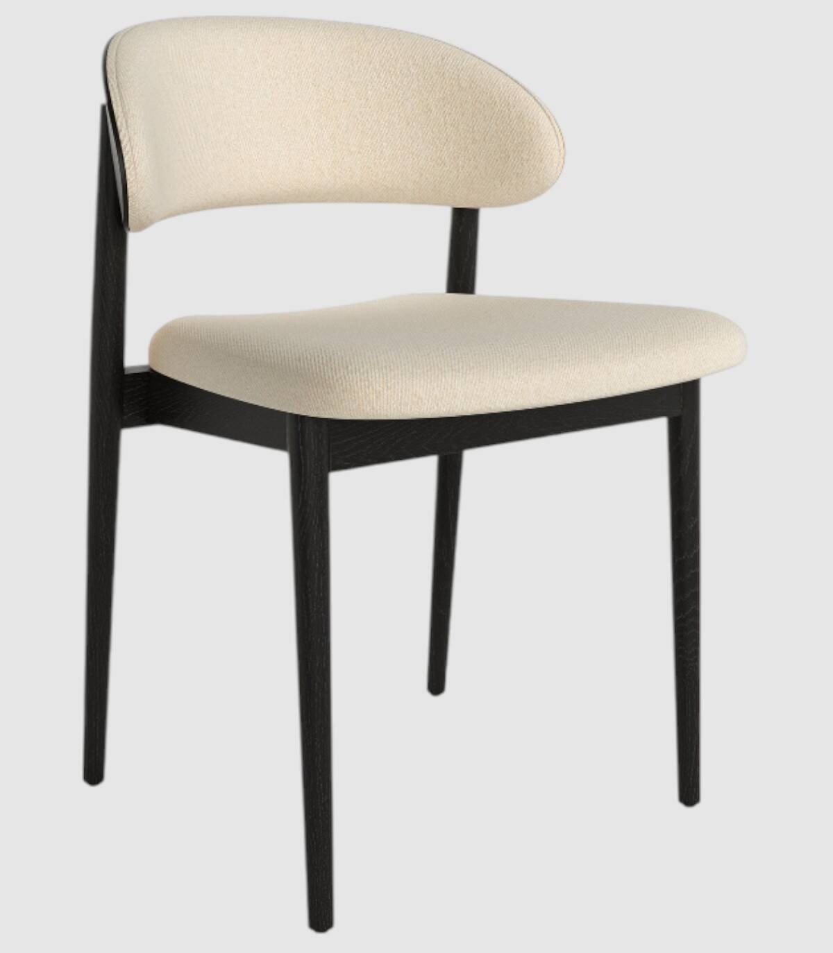La silla Ariel de comedor se compone de respaldo de madera de color roble negro y tapizado, cuatro patas de madera y asiento tapizado.