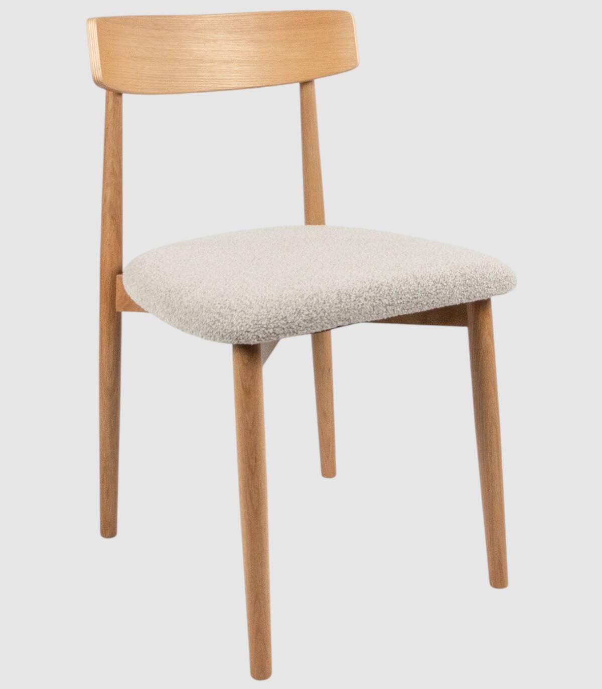 La silla Malmo de comedor se compone de respaldo de madera de color roble natural, cuatro patas de madera y asiento tapizado.