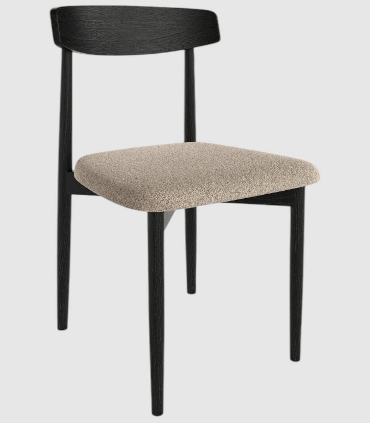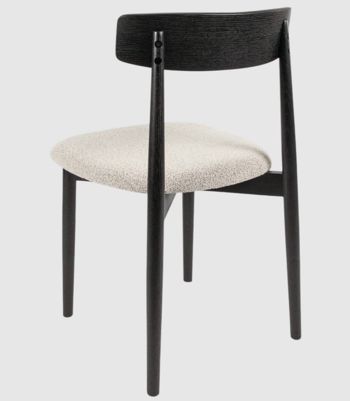 La silla Malmo de comedor se compone de respaldo de madera de color roble negro, cuatro patas de madera y asiento tapizado.