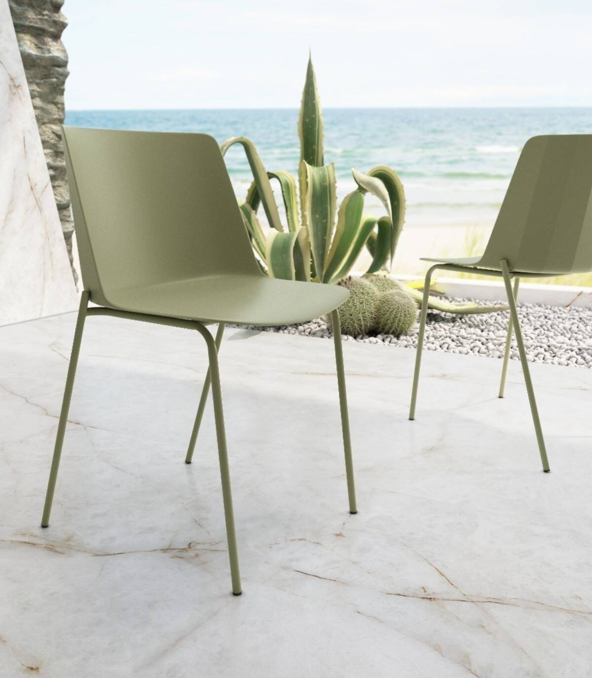 La silla Orlando con asiento y respaldo de polipropileno de diseño elegante y moderno, tiene una estructura de metal acabada en laca del mismo color.