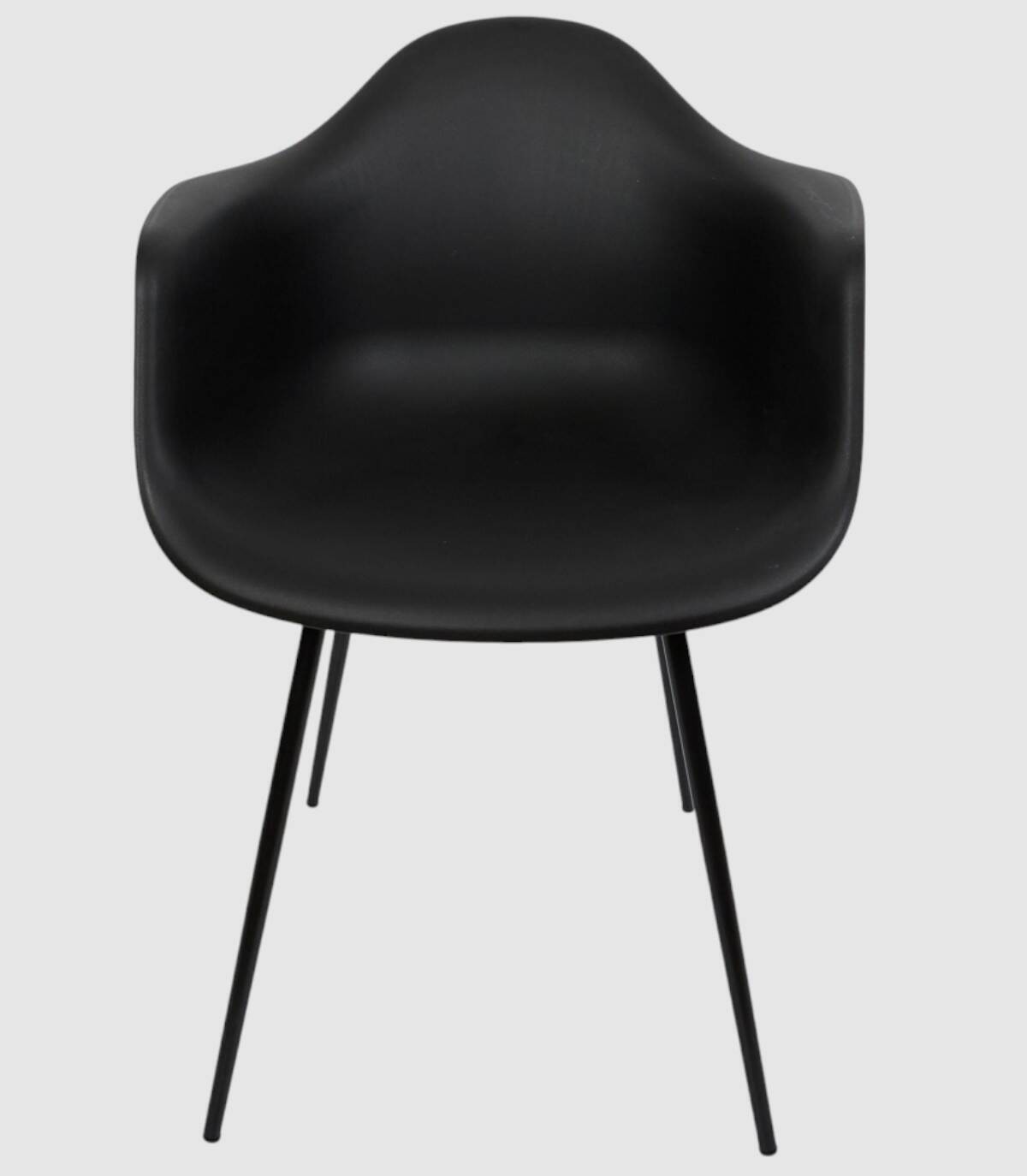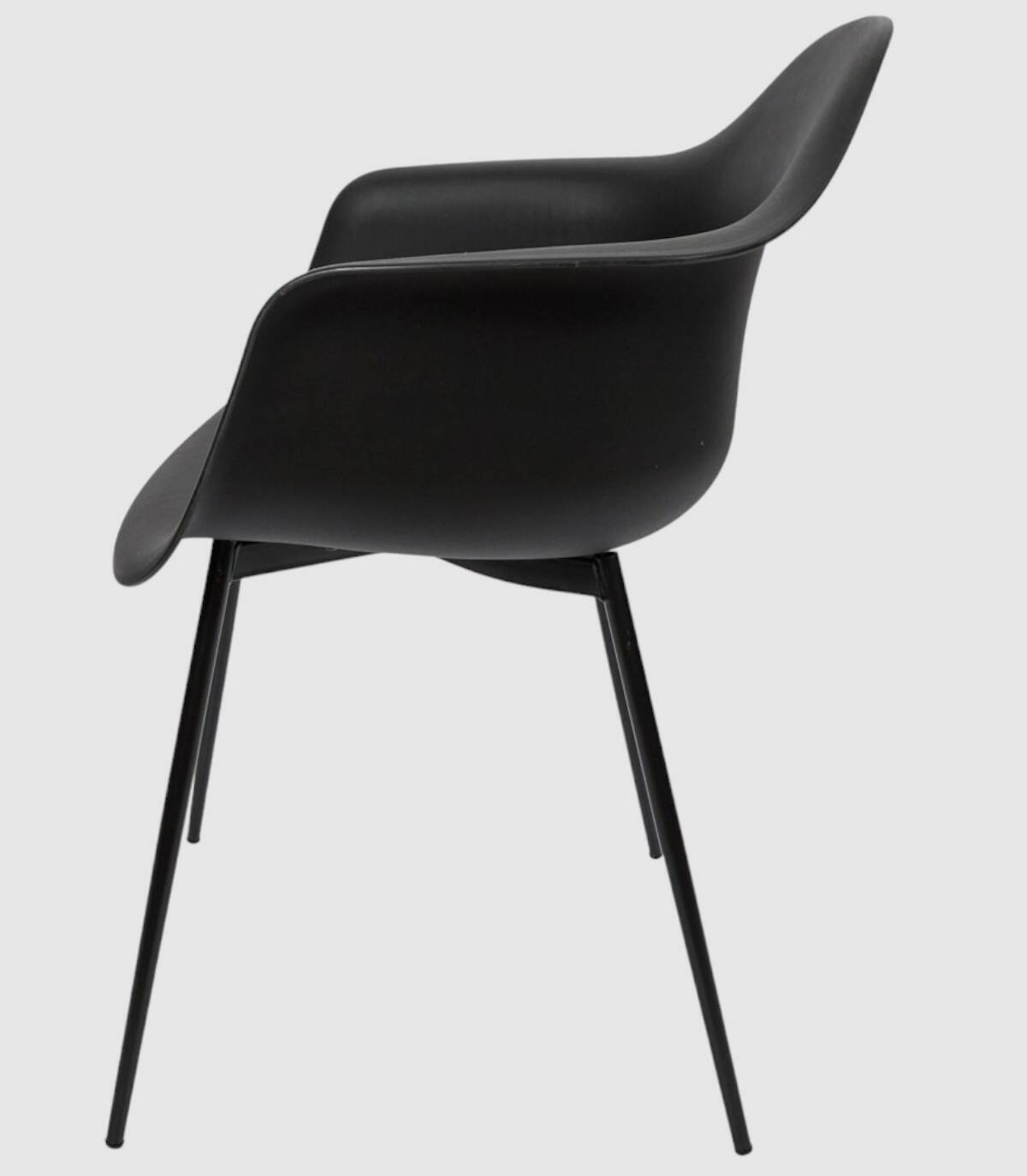 La silla con reposabrazos Gustav se compone de asiento, respaldo y reposabrazos de una pieza de polipropileno con cuatro patas de hierro de color negro. Silla butaca de estilo escandinavo.