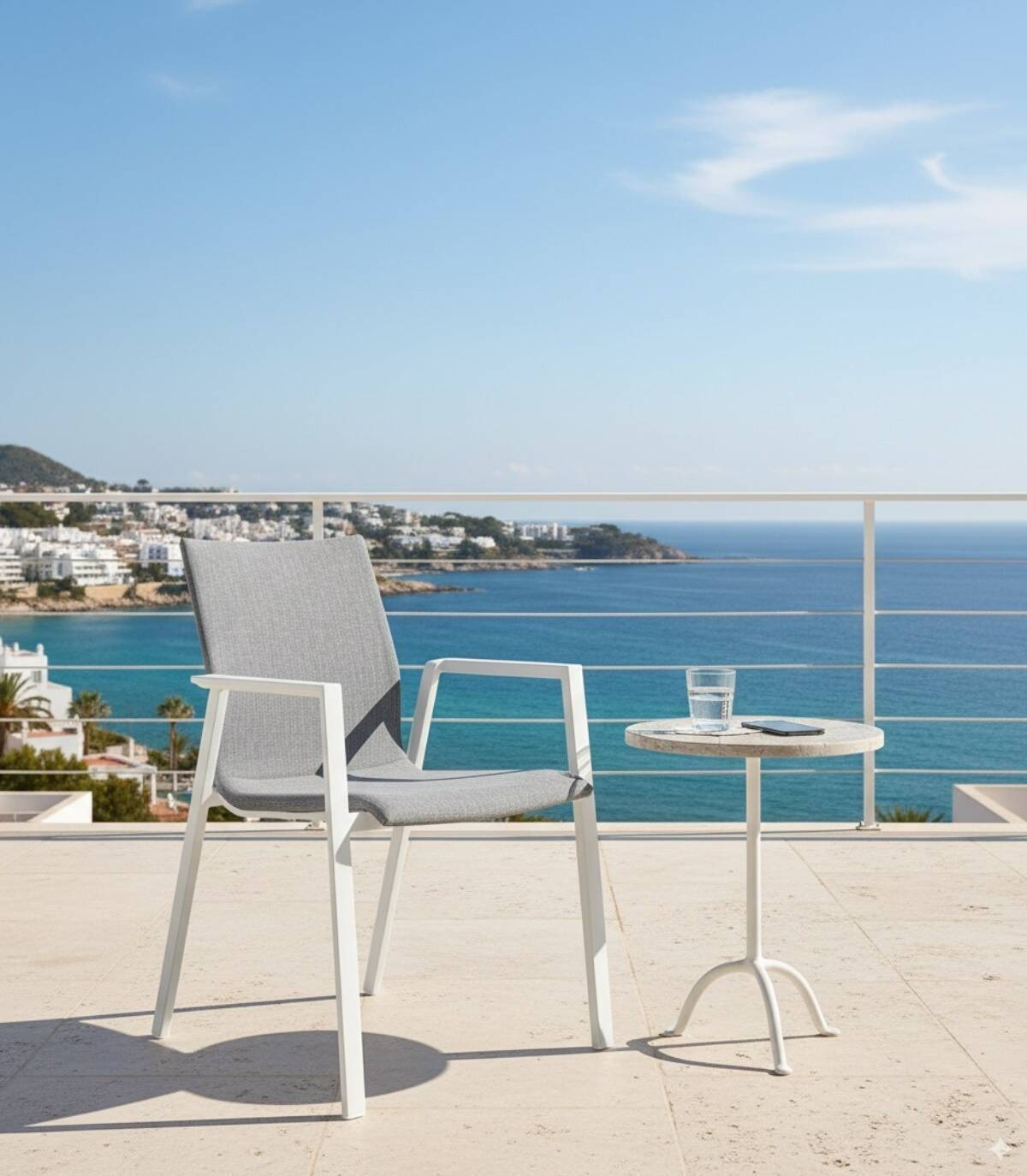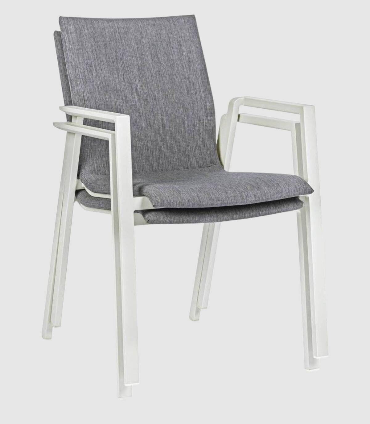 Silla aluminio textiline odeon Lunar, tiene un revestimeinto en la parte del textiline 70% textiline 30% olefin de carácter acolchado, que hace que sea un asiento mullido. Tiene una espuma Fast Dry, que hace que se seque rápido.