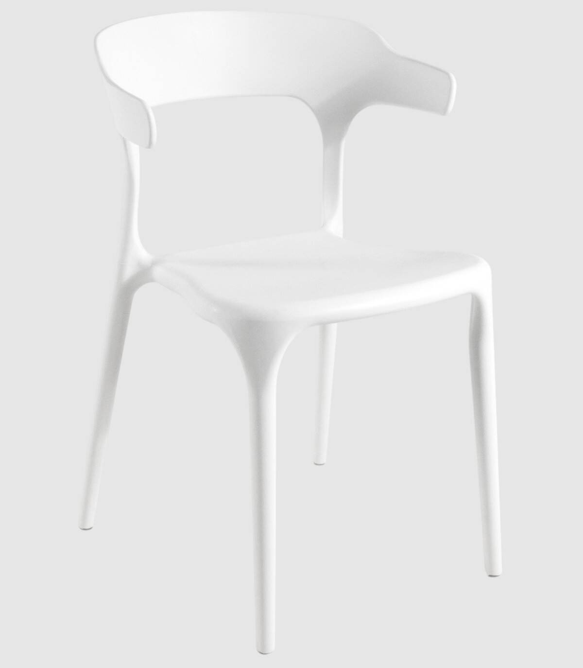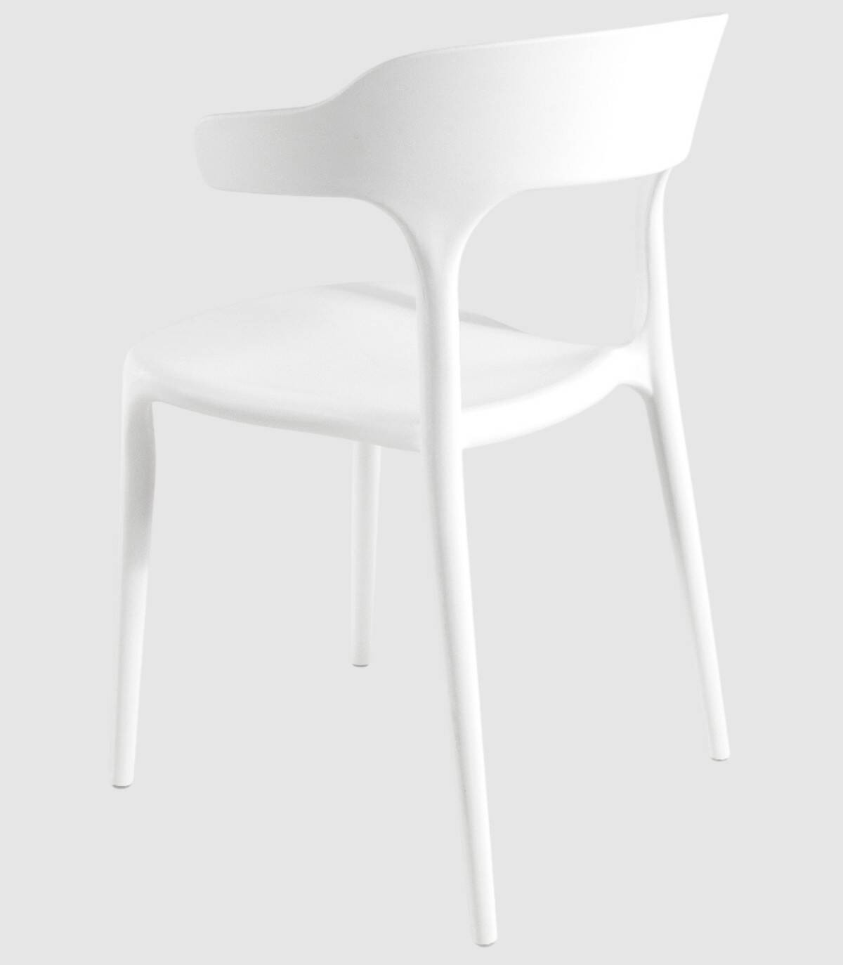 La silla Pisa apilable estilo monobloc, de diseño elegante y moderno, tiene una estructura de polipropileno con acabado todo del mismo color.