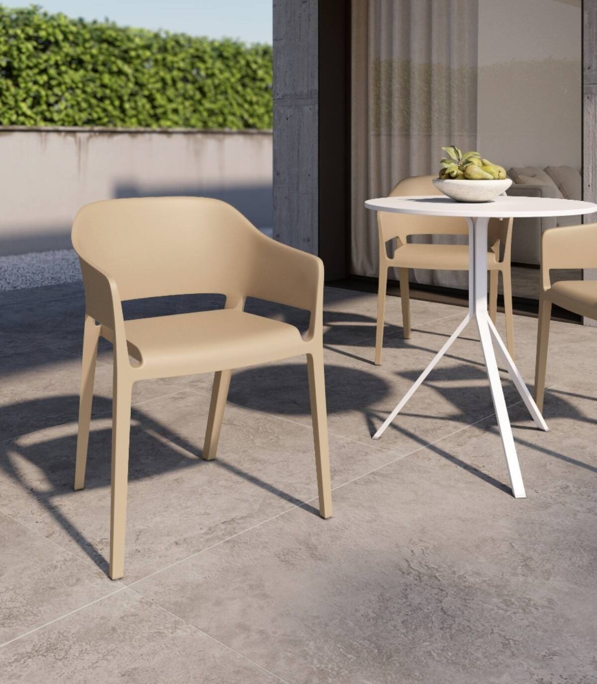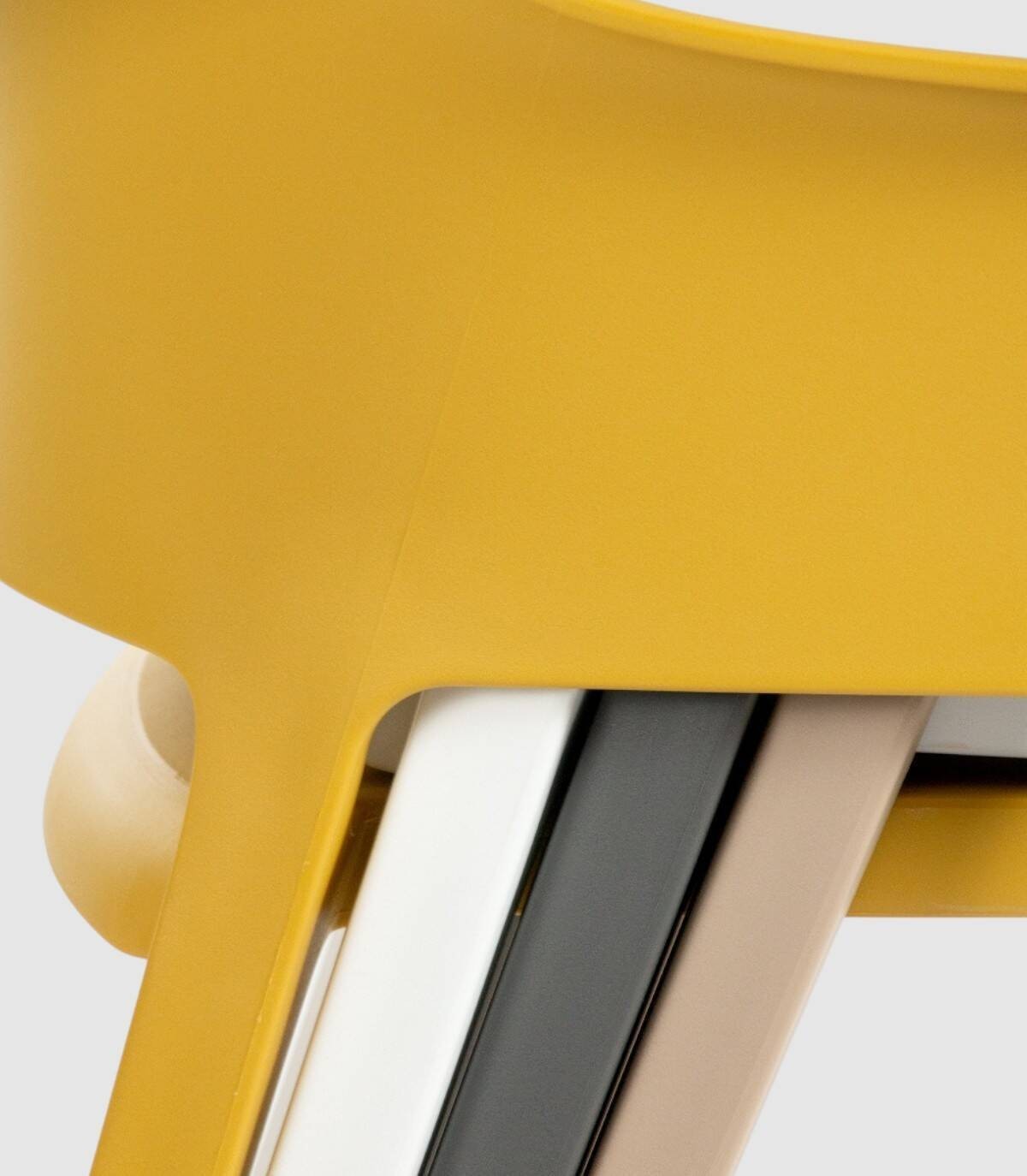 La silla Valeta apilable estilo monobloc, de diseño elegante y moderno, tiene una estructura de polipropileno con acabado todo del mismo color.