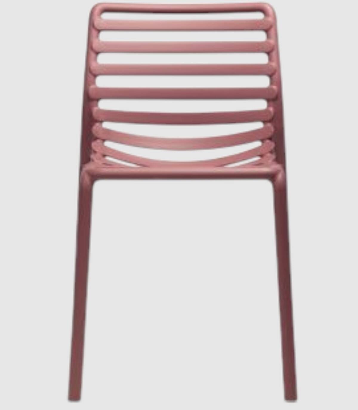 La silla apilable para exterior Doga se compone de asiento y respaldo fabricado en polipropileno fiberglass, tratado anti-UV, teñido en masa efecto mate, y cuatro patas con tapones antideslizantes.