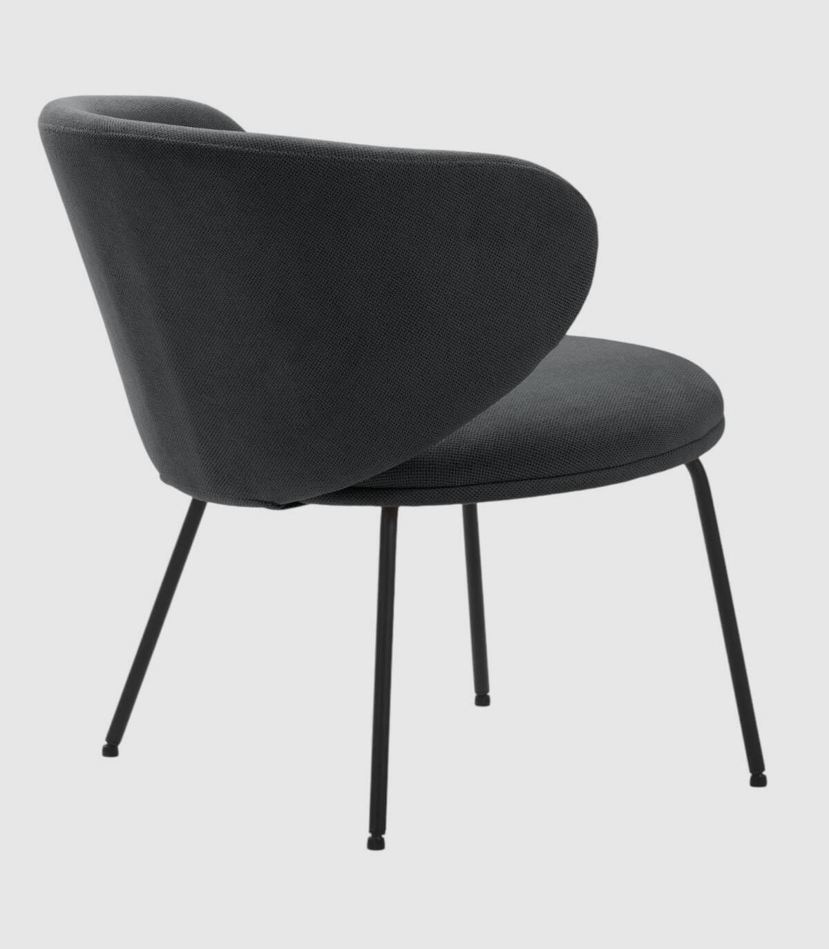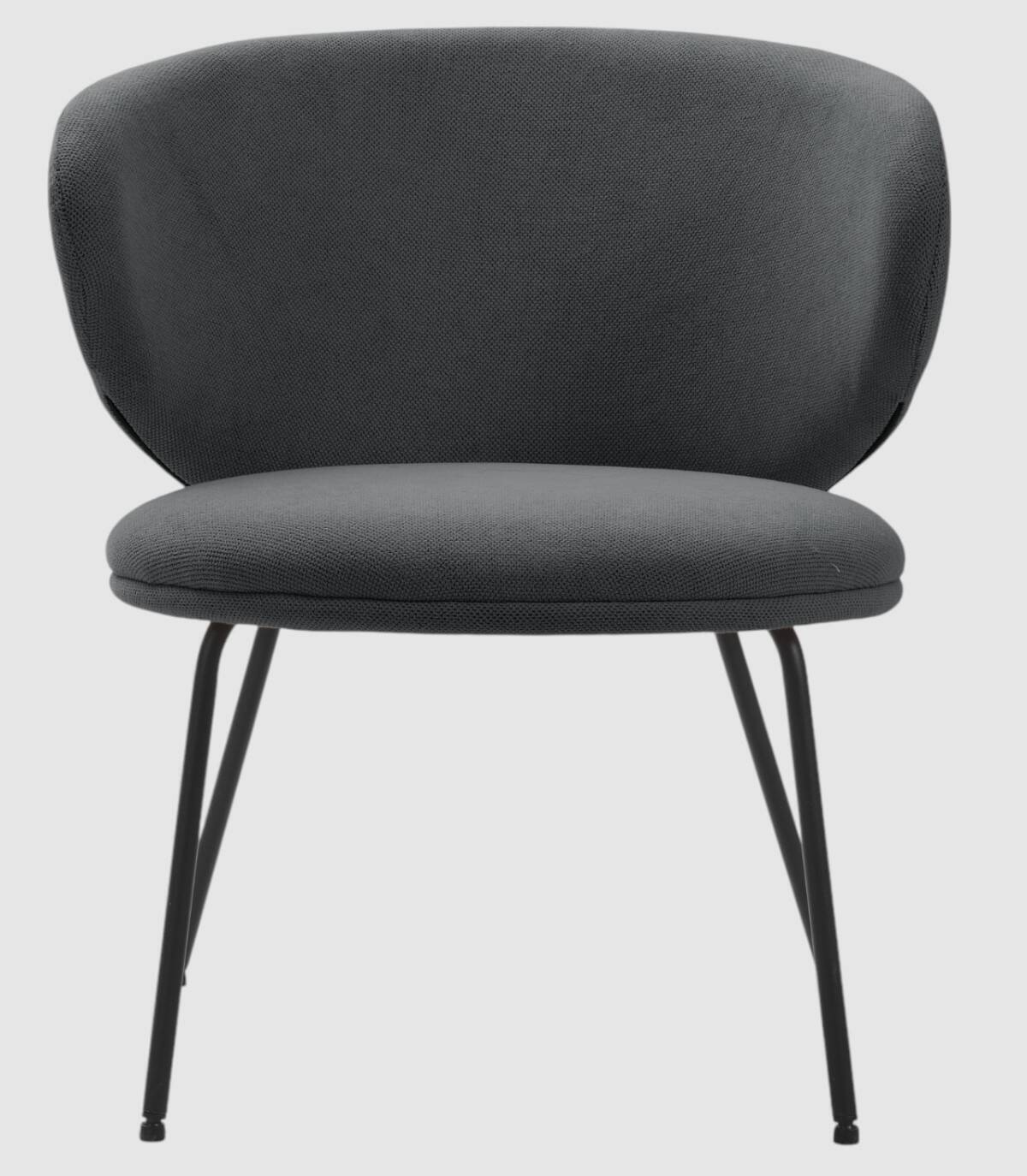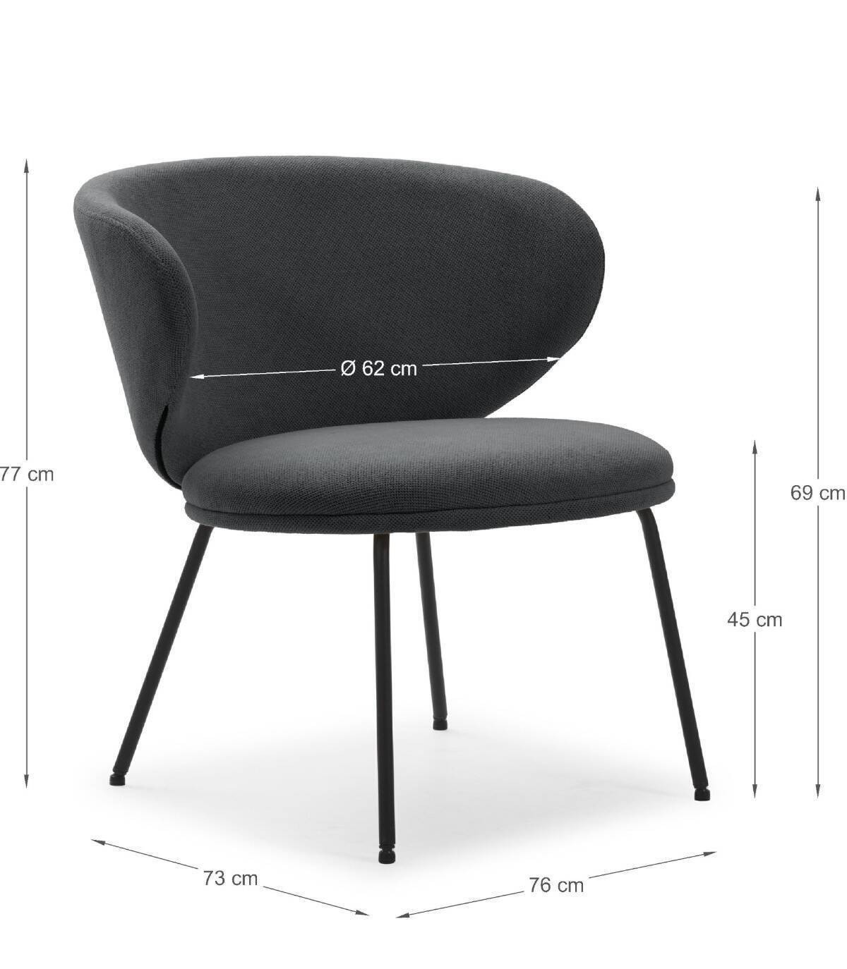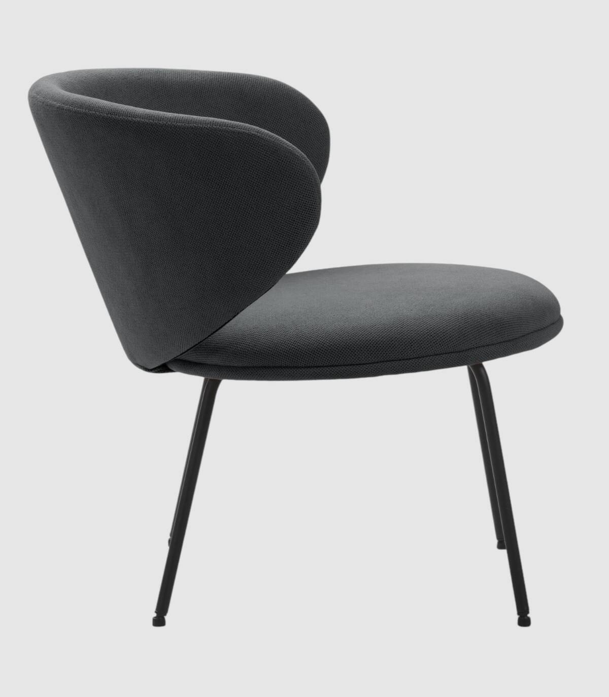 El sillón Hikady se compone de asiento y respaldo tapizados de color negro sobre estructura de metal con cuatro patas de color negro.