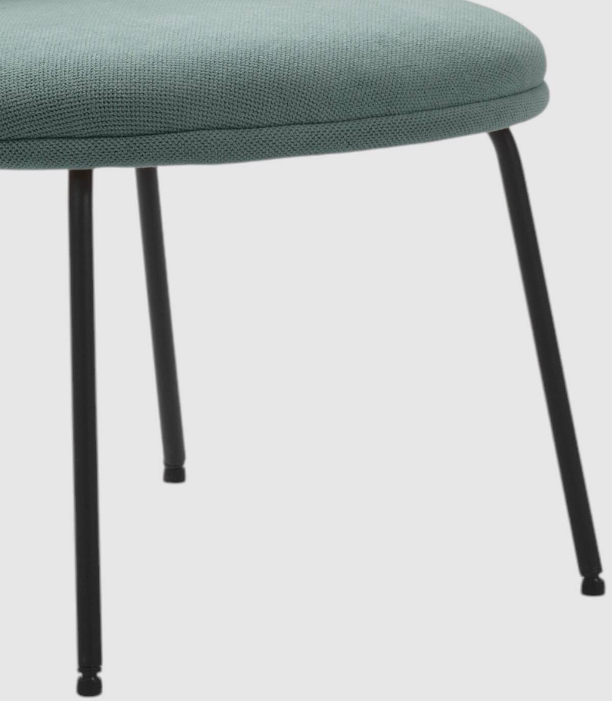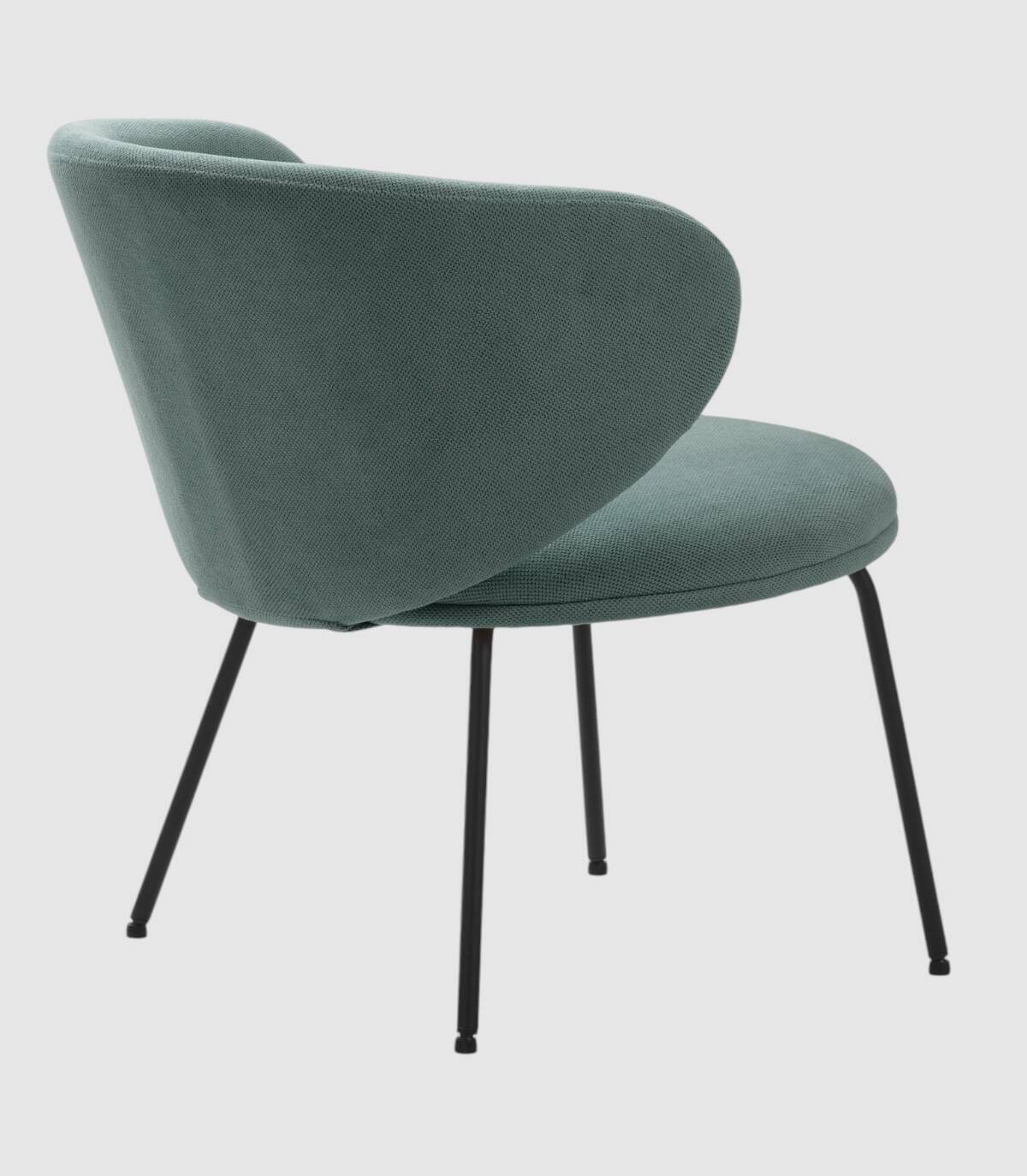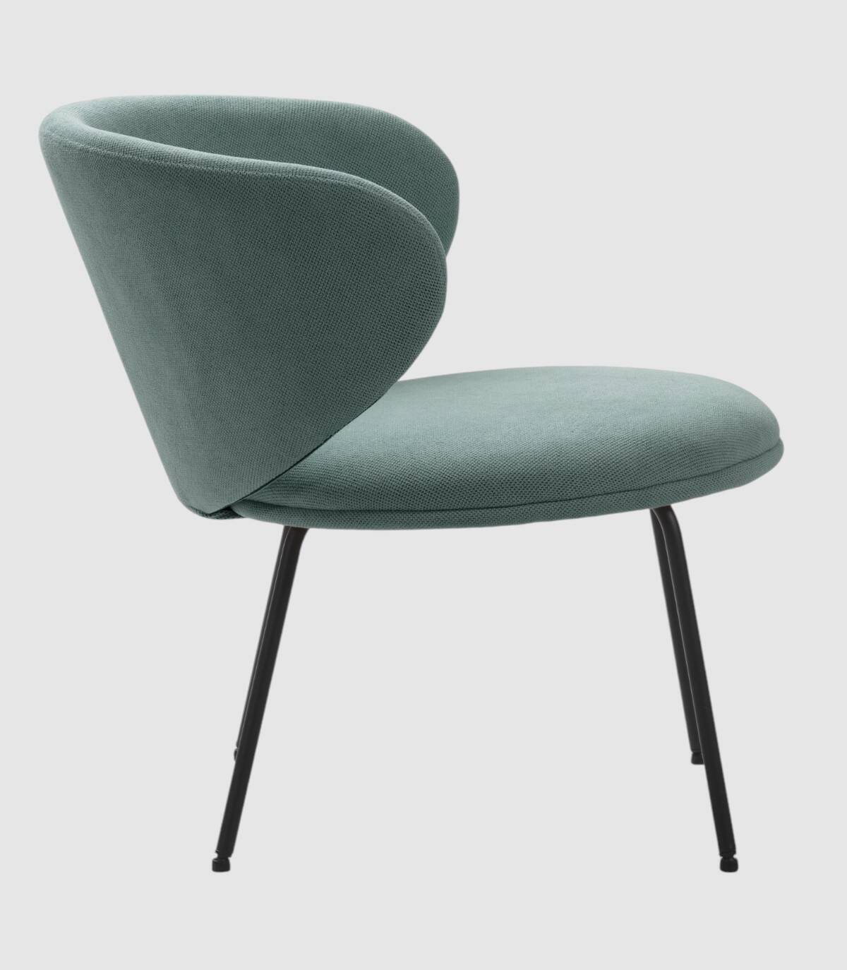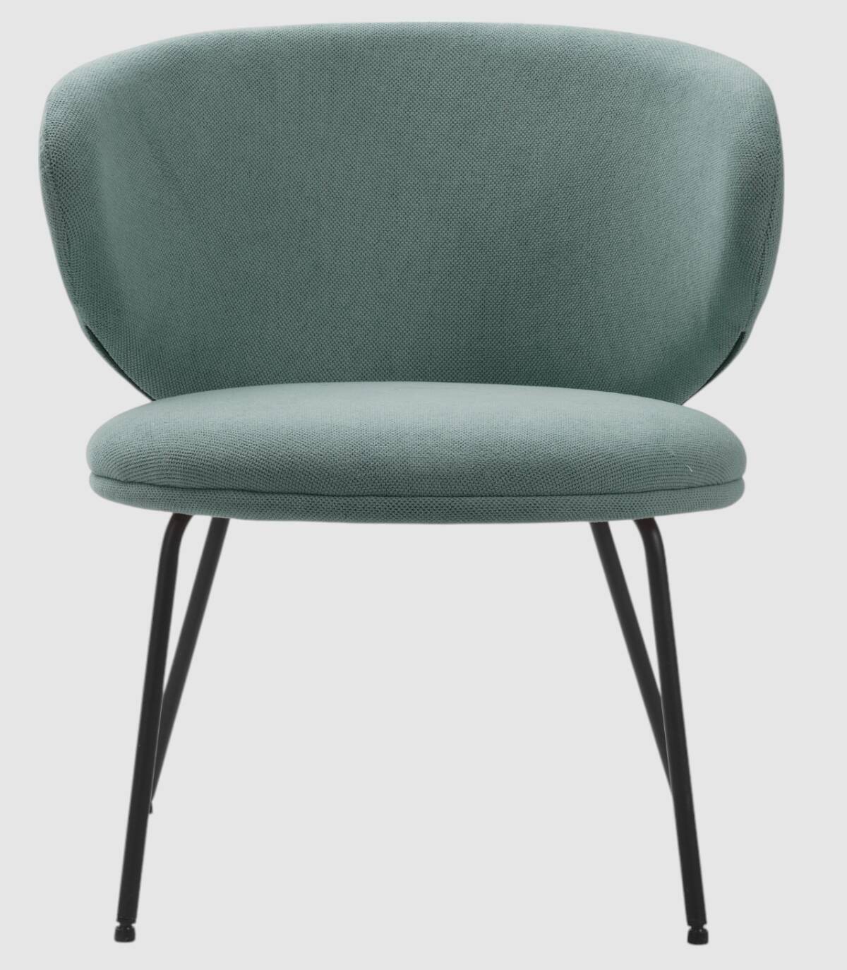 El sillón Hikady se compone de asiento y respaldo tapizados de color verde sobre estructura de metal con cuatro patas de color negro.