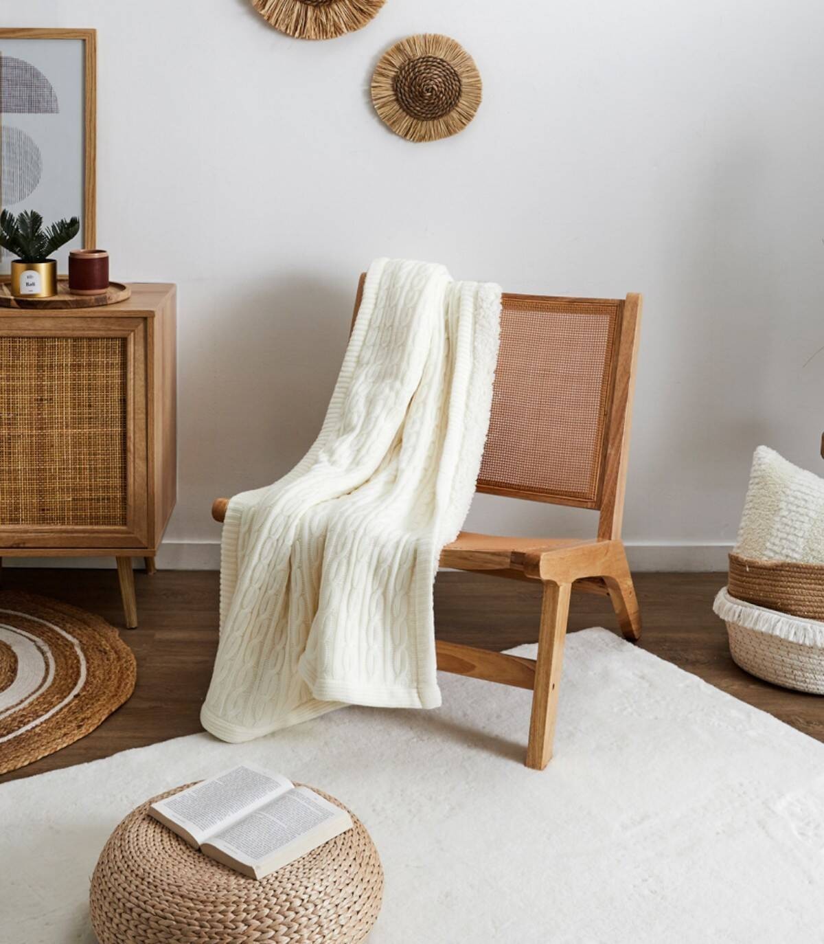 El sillón Bali se compone de asiento y respaldo de madera de árbol de la goma decorado estilo mimbre de color natural y polietileno de color beige con cuatro patas de madera. Combina con los muebles de la série Bali.