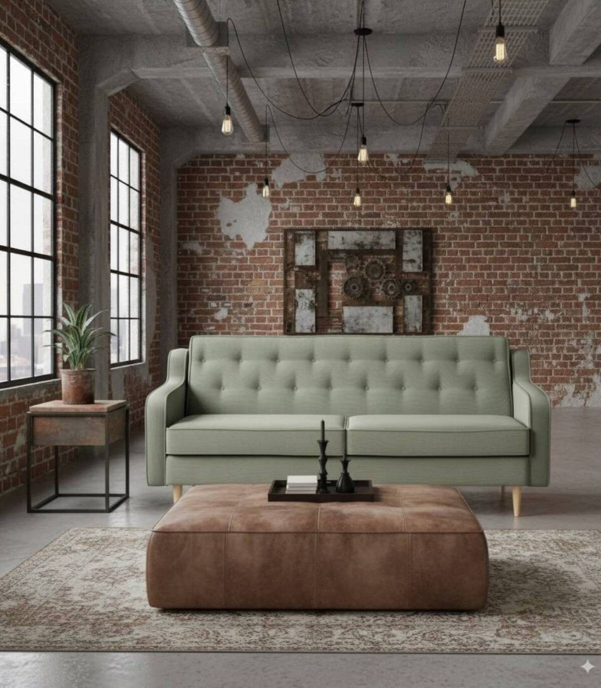 Sofá nórdico verde México de 3 plazas con tela de pana y patas de madera estructura de pino macizo. Los almohadones de respaldo están hechos de espuma 20 kg suave y los asientos de espuma de 30 kg . La altura de los asientos es de 47 cm y la distancia de los brazos de 10 cm.