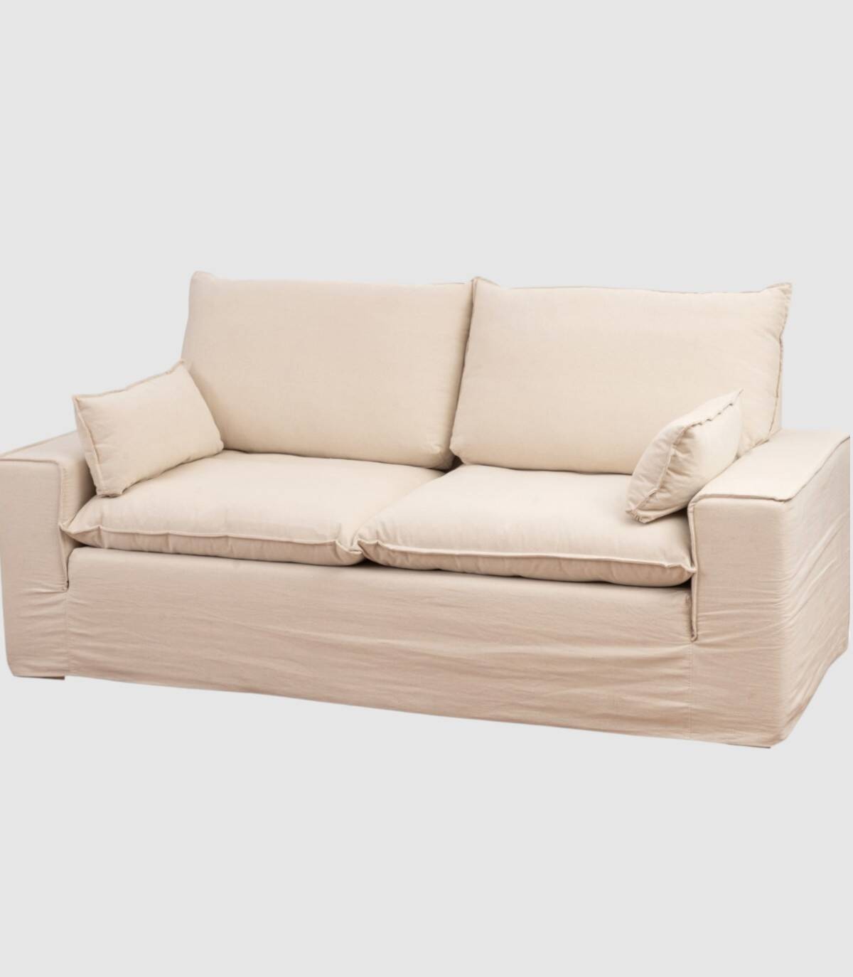 El sofá de tres asientos Siro con dos cojines a juego tiene estructura de pino macizo y aglomerado. Los almohadones de respaldo están hechos de 50% fibra, 50% soft/silk. Los asientos de espuma de 30 kg suave, colchoneta exterior de fibra soft silk. La altura de los asientos es de 50 cm y el ancho de los brazos es de 22 cm. Un sofá de fácil limpieza ya que los cojines y el armazón son desenfundables.