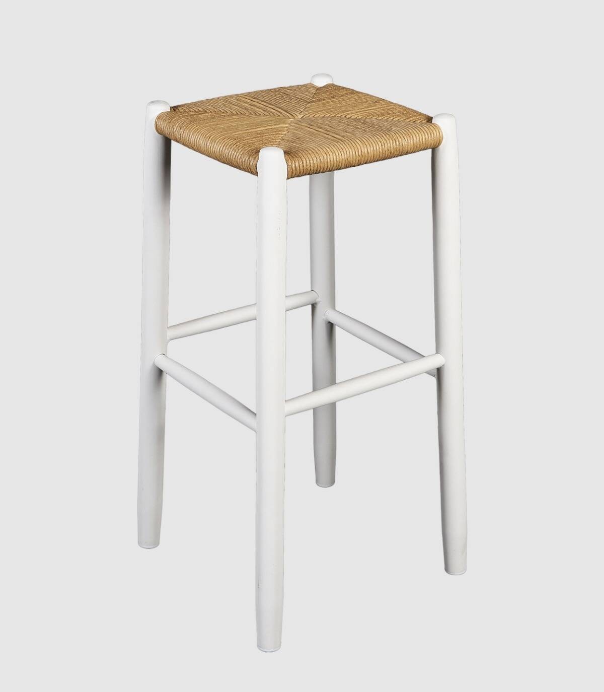 El taburete Stipa está fabricado en madera. Tiene una asiento tejido con esparto.